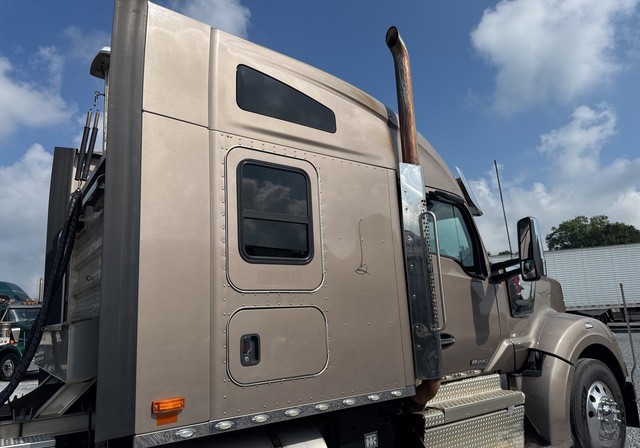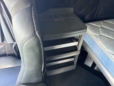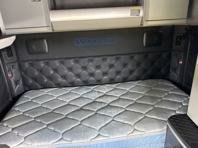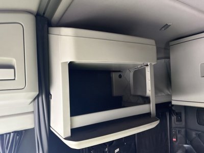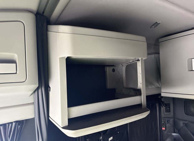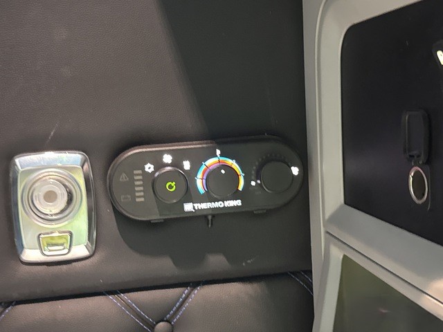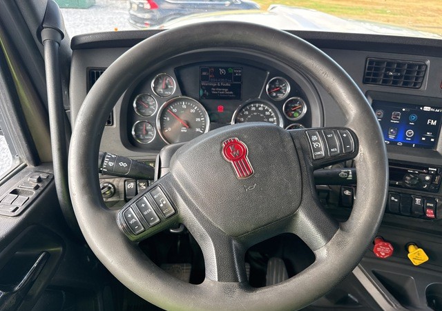 Step inside the cab, and you’ll find a space meticulously designed for driver comfort and convenience. The sleeper cab options, available in 62-inch or 76-inch mid-roof configurations, provide ample room for rest during long hauls, featuring modern amenities such as climate control, premium upholstery combining leather and vinyl, and thoughtful storage compartments. The Thermo King bunk heater ensures warmth during cold nights on the road, while the powerful air conditioning system keeps the cabin cool during the hottest summer days.