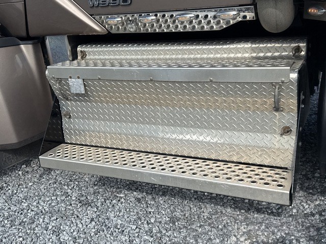 The exterior design of the W990 is a perfect blend of classic and modern elements. The truck’s long, aggressive hood and aerodynamic lines pay homage to traditional American trucks, while the addition of modern chrome bumpers, dual exhaust stacks, and polished aluminum wheels provide a sleek, professional look. The truck is also equipped with an air sliding 5th wheel, which allows for adjustable trailer positioning, enhancing maneuverability and load balance.