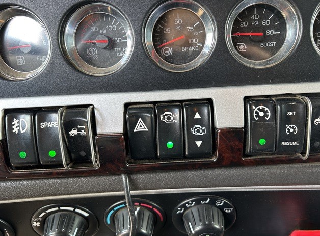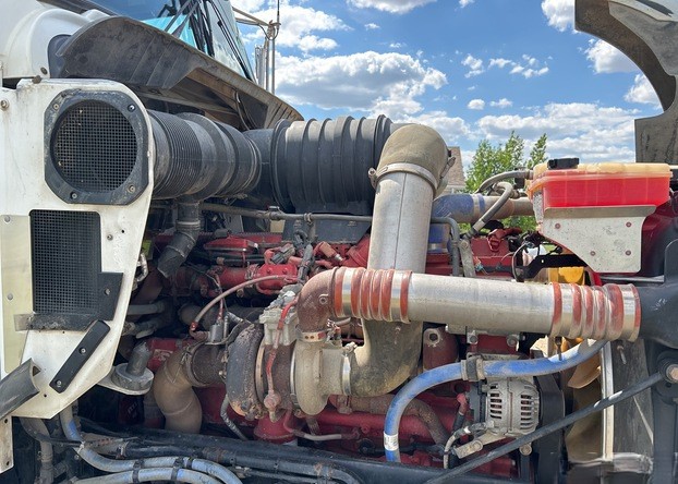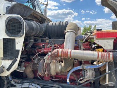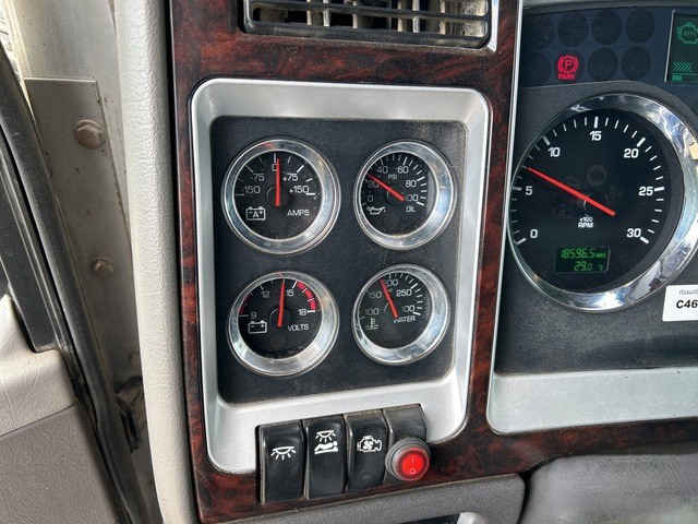 Cummins ISX 6 Cylinder 15.0 L Diesel 500 hp Engine, 2011 US EPA Label, Requires Diesel Exhaust Fluid, Webasto Engine Coolant Heater, 18596 Engine hrs, Air Conditioner, Cruise Control, Power Windows, Engine Brake, Eaton Fuller RTLO-18918B 18-Speed Transmission, Double Differential Locks, 12350 lb Front Axle, 40000 lb Rears, Dana D40-170P Drive Axles, 3.91:1 Axle Ratio, Air Ride Cab, 62 in Mid Roof Sleeper Cab, Bunk Heater, Aluminum Wheels, 11R22.5, 8-Bag Air Ride Suspension, 226 in Wheelbase, Air Sliding 5th Wheel, Dual Fuel Tanks.