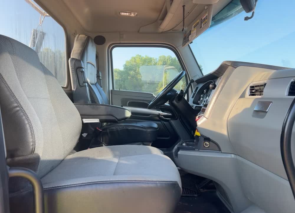 Safety and driver comfort are prioritized through features such as adaptive cruise control, lane assist, automatic air conditioning, and power windows, locks, and mirrors. The truck also comes equipped with power take-off (PTO) capabilities and suspension dump functions, making it highly versatile for a variety of vocational tasks.