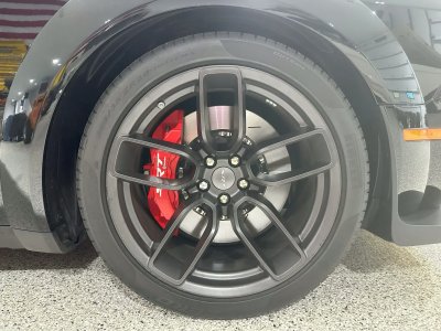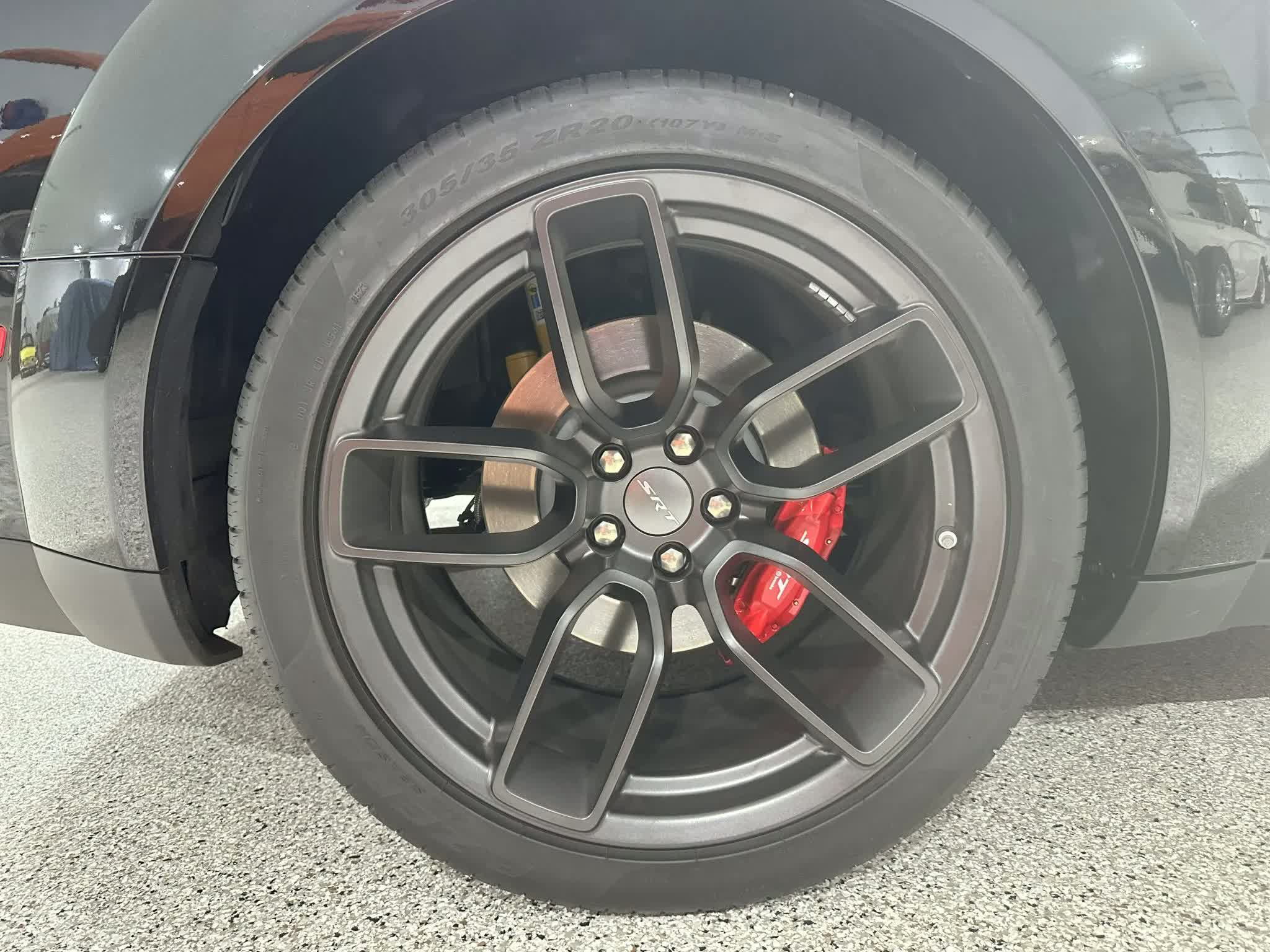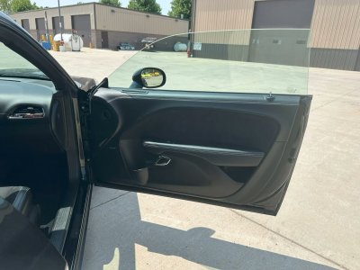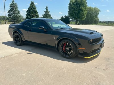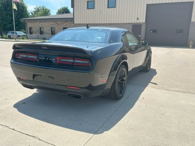 This 2023 Dodge Challenger SRT Hellcat Widebody Jailbreak is powered by a supercharged 6.2-liter V8 linked to an eight-speed automatic transmission and a limited-slip differential. Finished in black over black Nappa leather and Alcantara, the car has 2,100 miles and is equipped with Brembo brake calipers, a competition suspension, 20″ Devil’s Rim forged aluminum wheels, a power sunroof, HID Air-Catcher headlamps, widebody fenders, heated and ventilated front seats, a Harman Kardon sound system, and a Uconnect infotainment system with navigation. The car is finished in black with satin black front and rear spoilers. Additional details include HID Air-Catcher headlamps, a power sunroof, widebody fenders, an aluminum hood with dual air scoops, Hellcat fender badges, chin spoiler guards, a rearview camera, rear parking sensors, and dual exhaust outlets. Black 20″ Devil’s Rim forged aluminum wheels are mounted with Pirelli tires. The car is equipped with a Widebody competition suspension system with adaptive Bilstein dampers. Braking is handled by red-finished six-piston front and four-piston rear Brembo calipers.