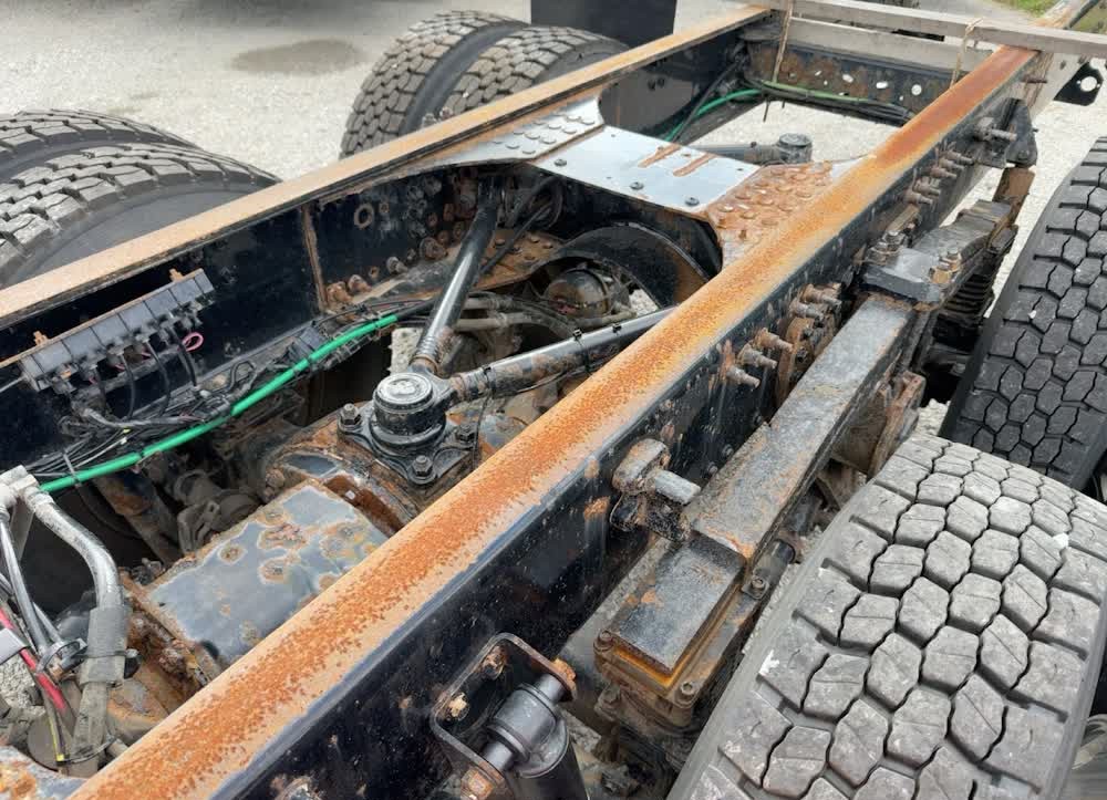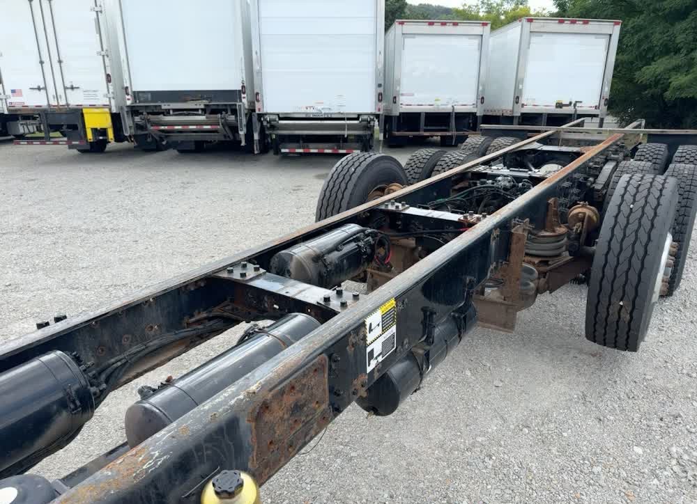 The wheelbase measures 286 inches, giving the truck great stability and weight distribution, especially when configured with long bodies or trailers. From the back of the cab to the center of the rear axle (Cab-to-Axle), the distance is 215 inches, while the cab-to-end-of-frame measurement is 333 inches, offering plenty of room for body installations like dumps, tanks, or roll-offs.