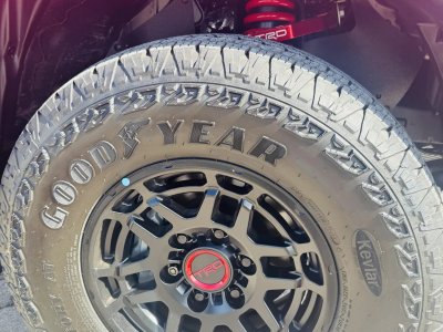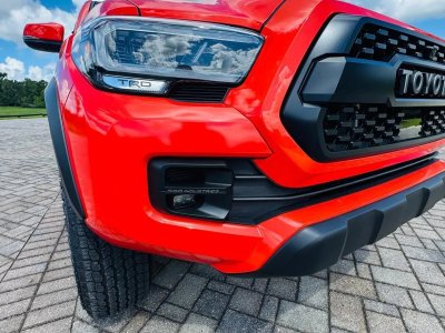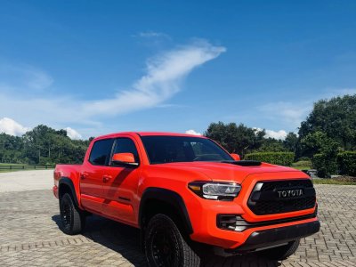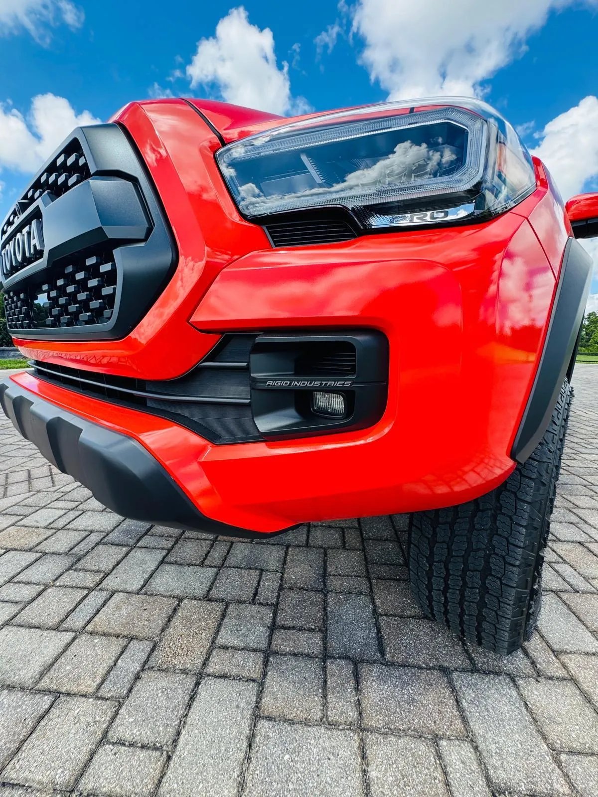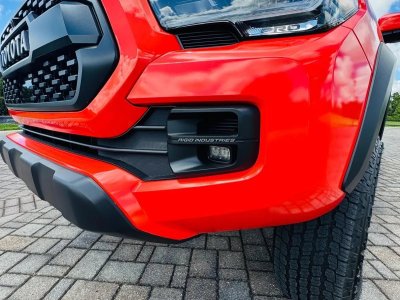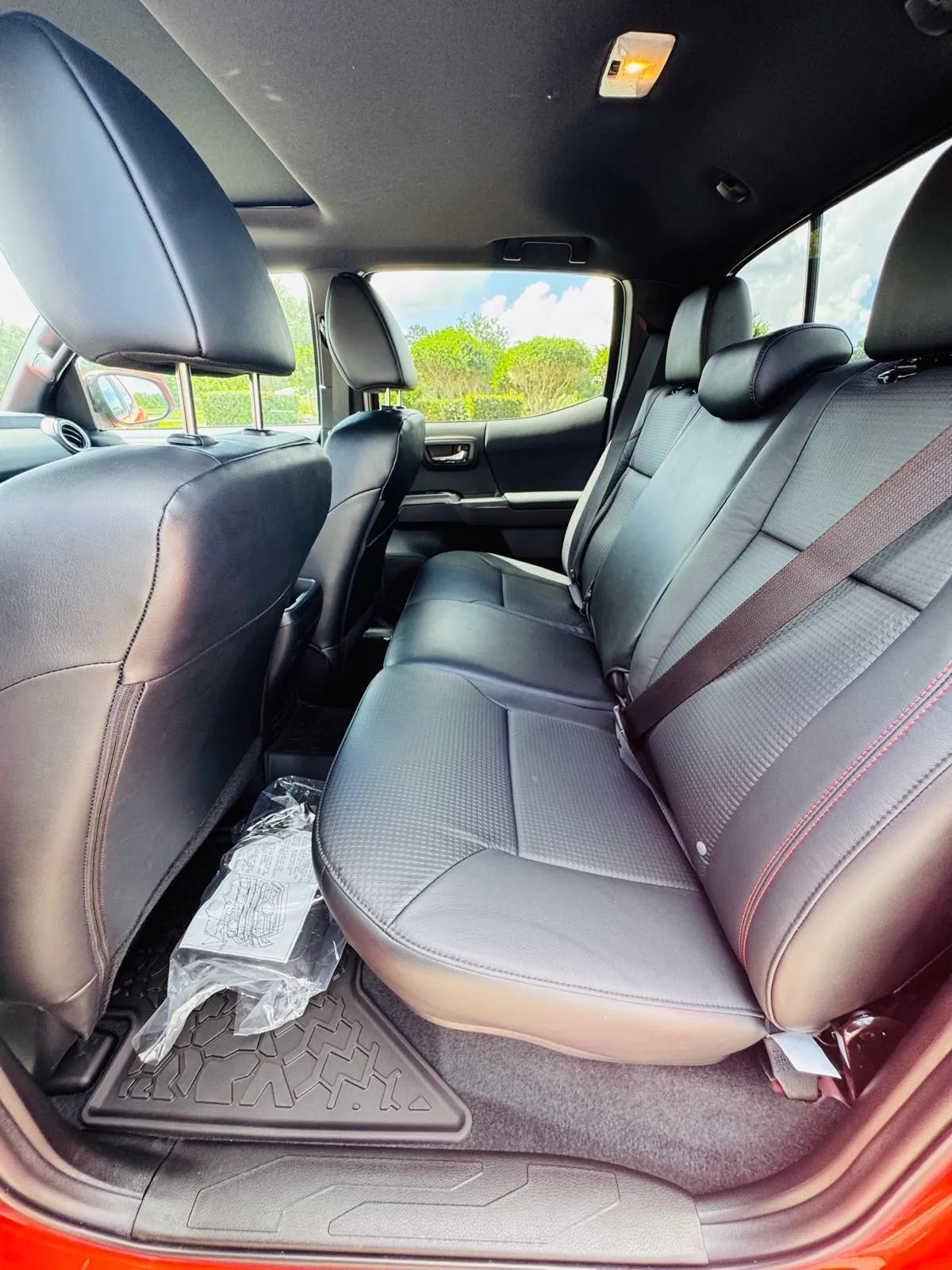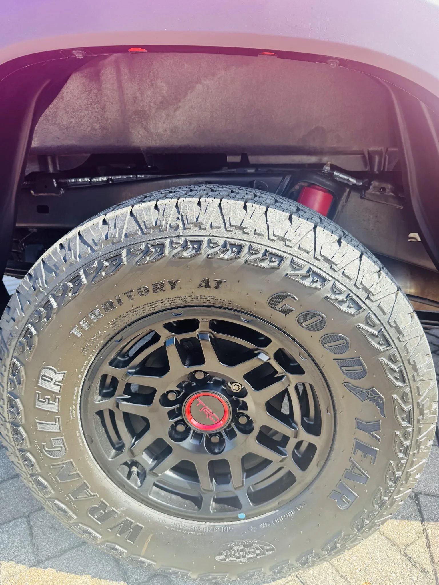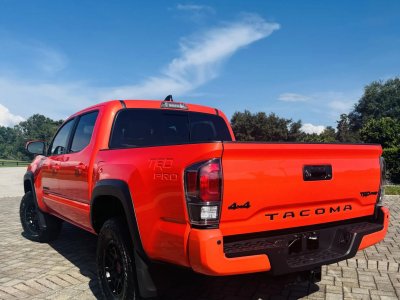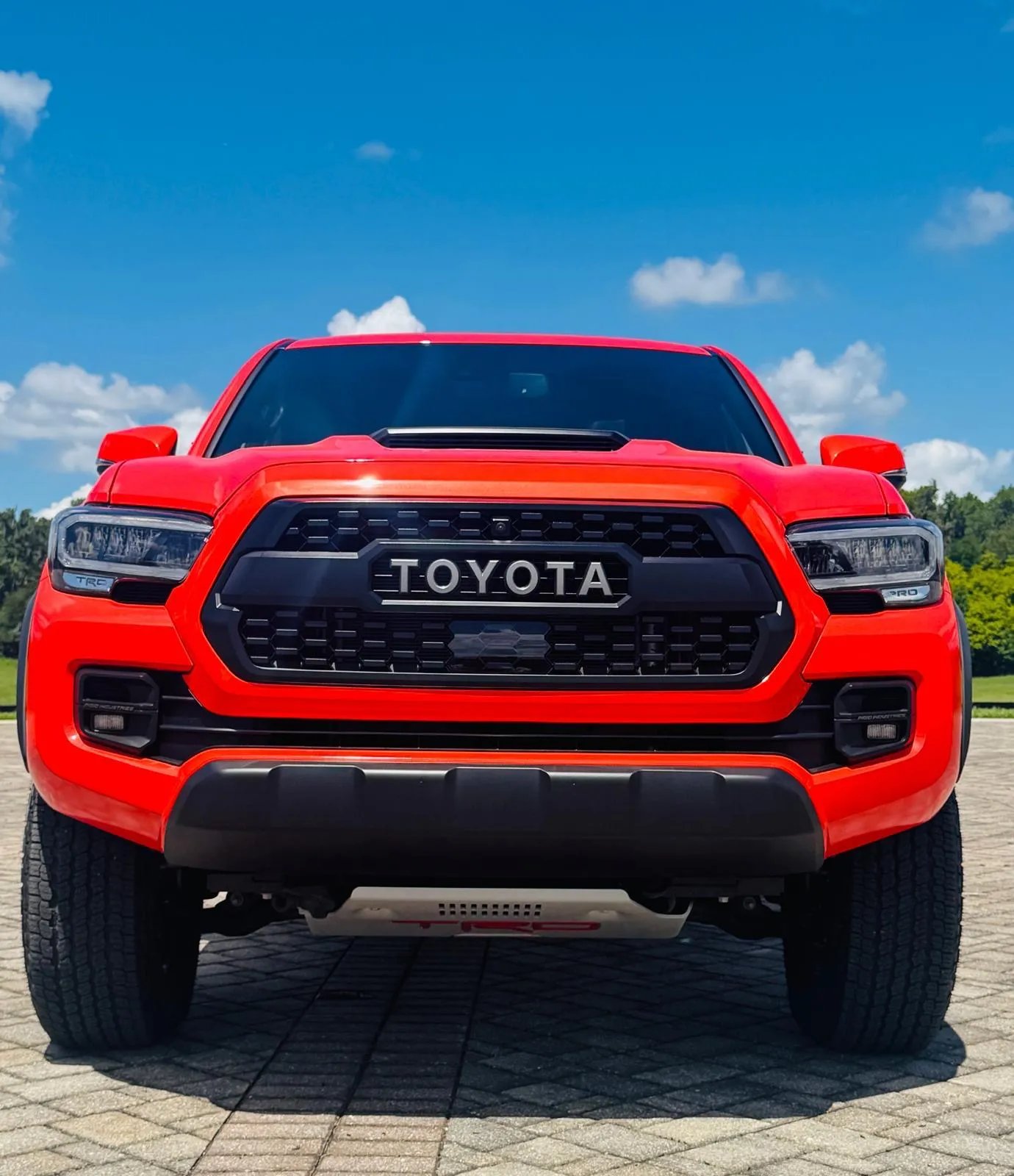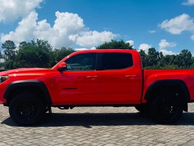 The 16″ TRD Pro black alloy wheels are mounted with Goodyear Wrangler tires. Braking is handled by power-assisted ventilated front discs and rear drums. The truck came equipped from the factory with an off-road-tuned suspension that utilizes 2.5″ Fox internal bypass shocks as well as Crawl Control and Multi-Terrain Select. The cabin is upholstered in black leather, and amenities include an 8″ touchscreen infotainment system, a power-adjustable driver’s seat, heated front seats, Pre-Collison Assist, Lane Departure Alert, air conditioning, Dynamic Radar cruise control, and power windows, mirrors, and locks.