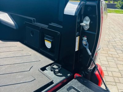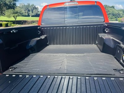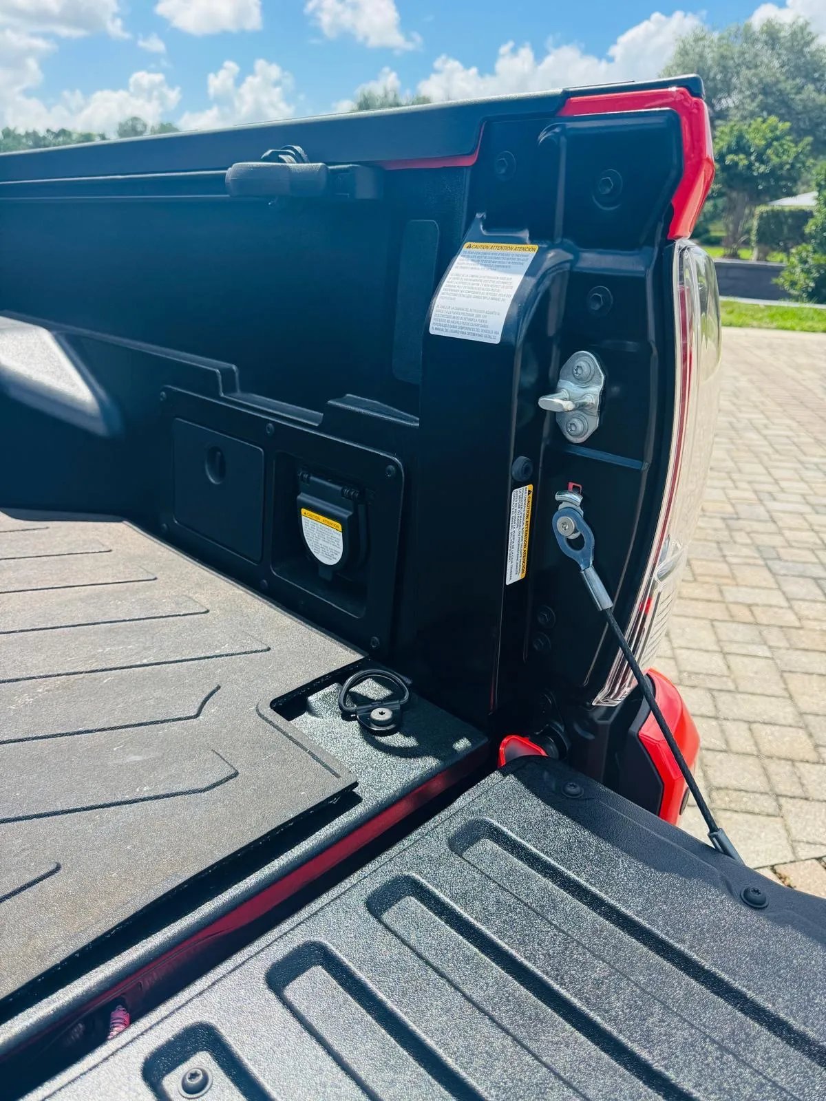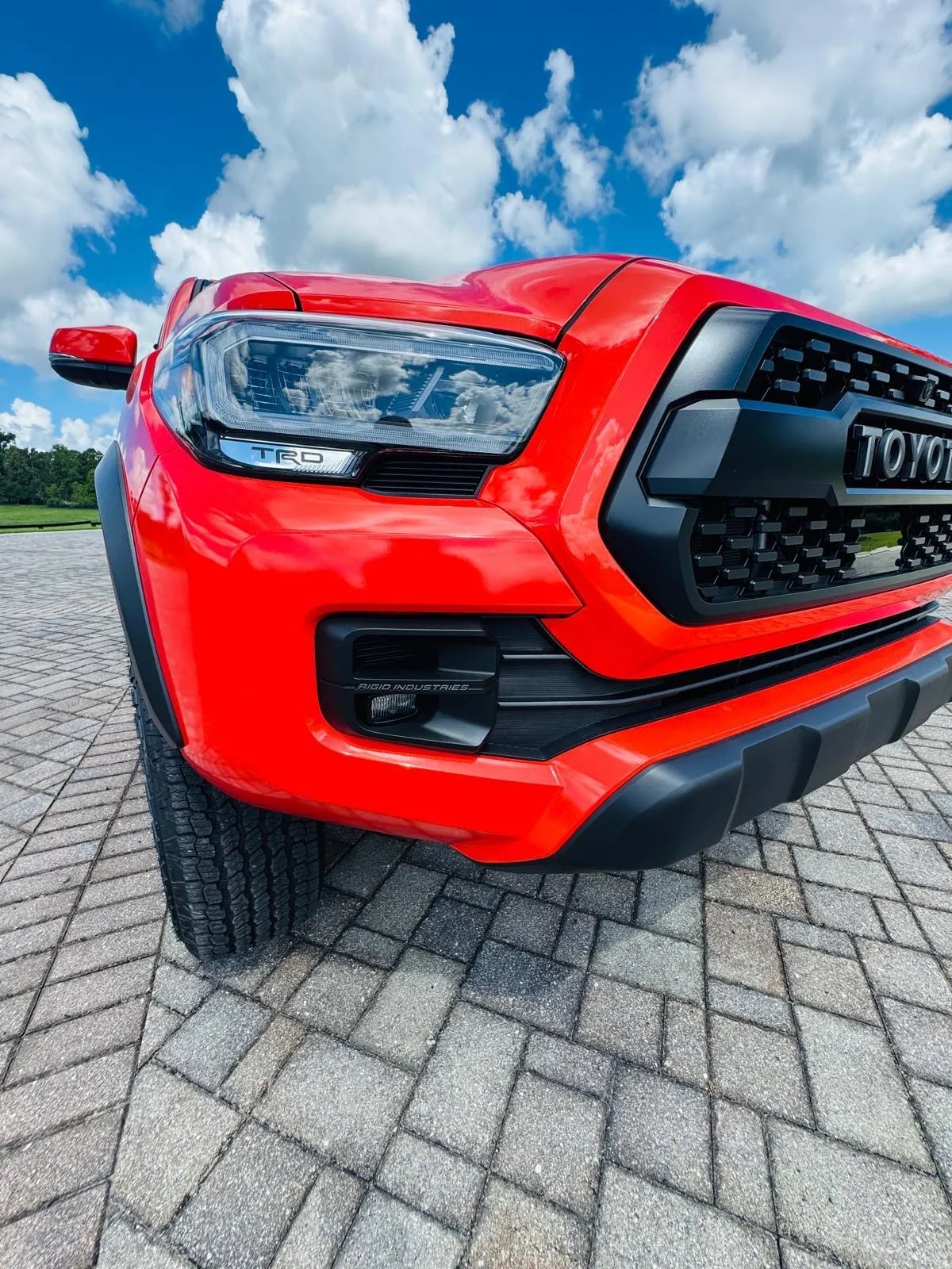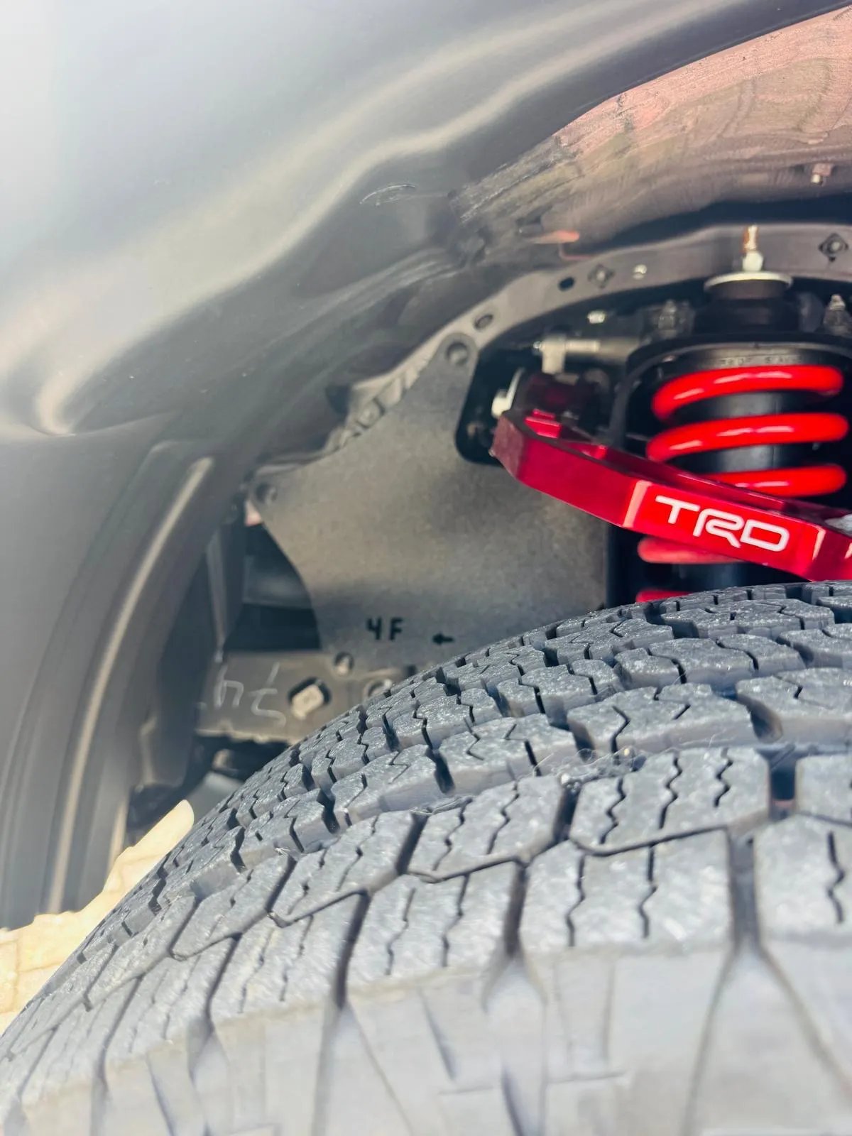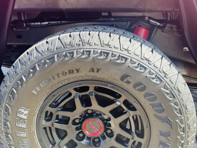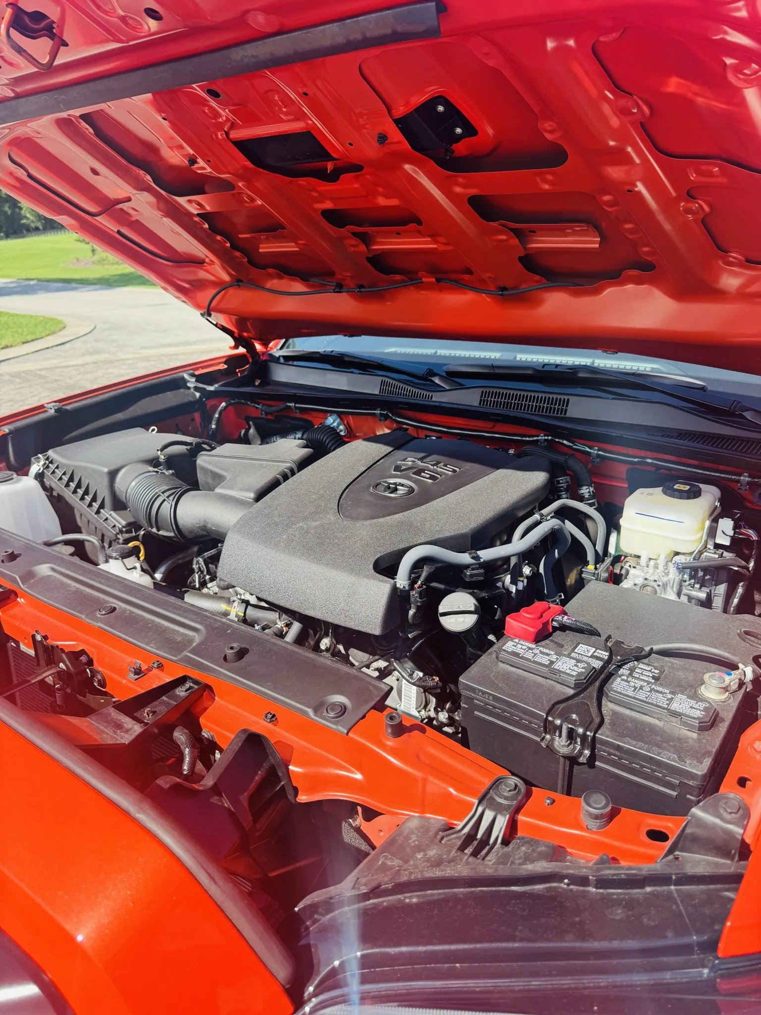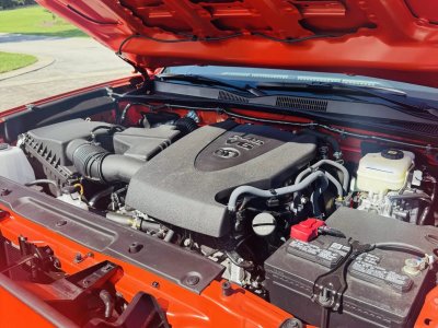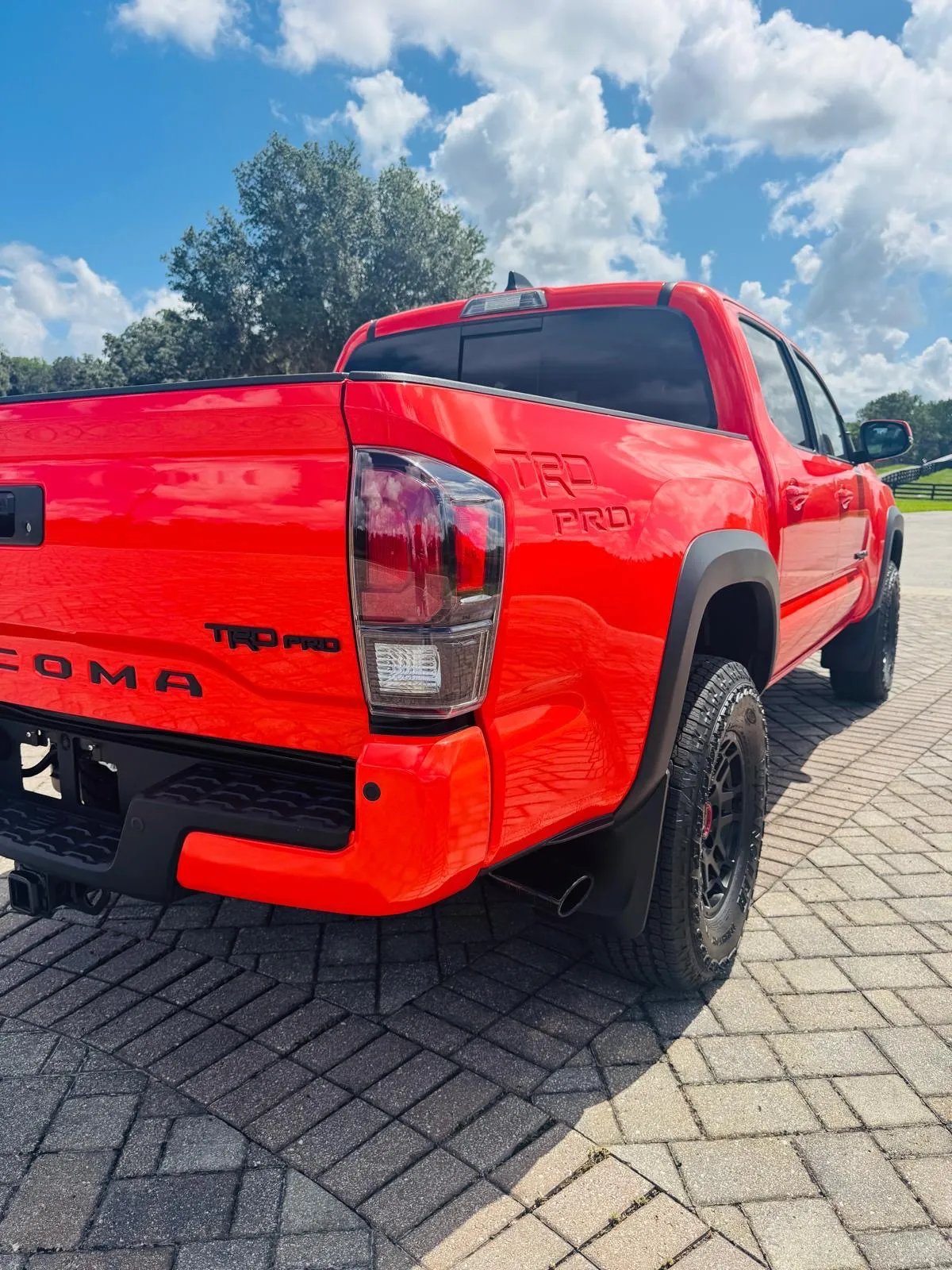 The 16″ TRD Pro black alloy wheels are mounted with Goodyear Wrangler tires. Braking is handled by power-assisted ventilated front discs and rear drums. The truck came equipped from the factory with an off-road-tuned suspension that utilizes 2.5″ Fox internal bypass shocks as well as Crawl Control and Multi-Terrain Select. The cabin is upholstered in black leather, and amenities include an 8″ touchscreen infotainment system, a power-adjustable driver’s seat, heated front seats, Pre-Collison Assist, Lane Departure Alert, air conditioning, Dynamic Radar cruise control, and power windows, mirrors, and locks.