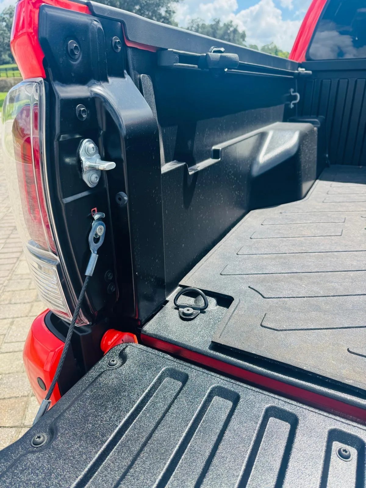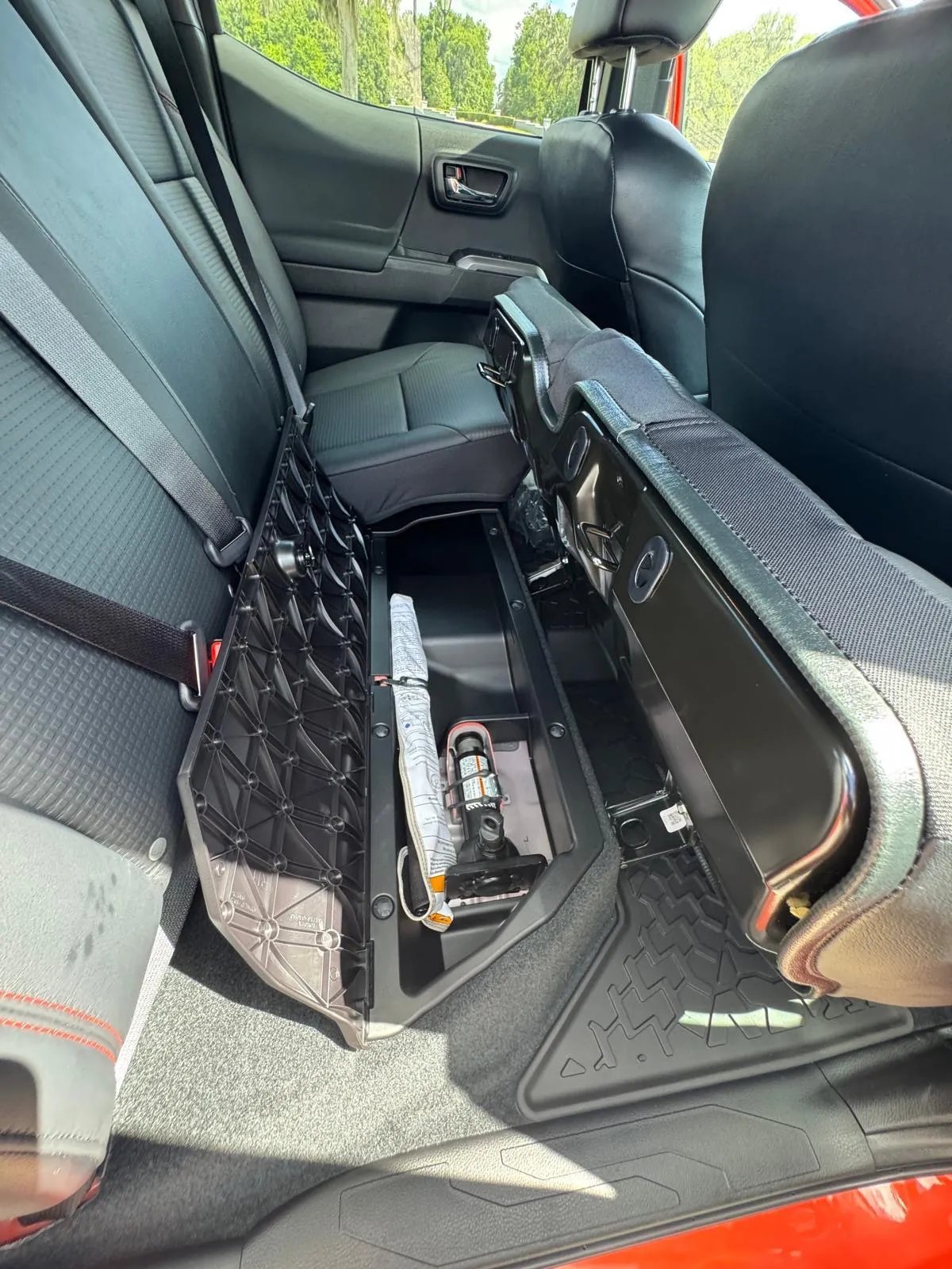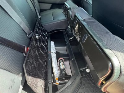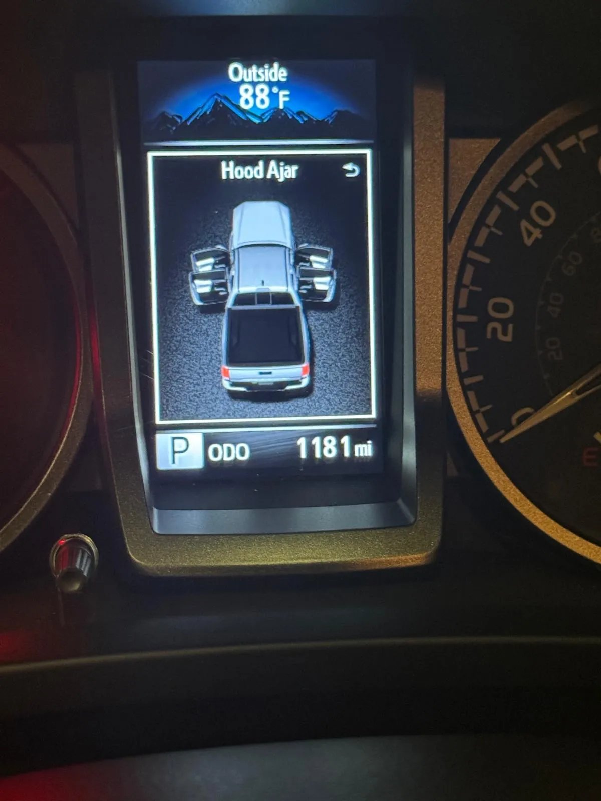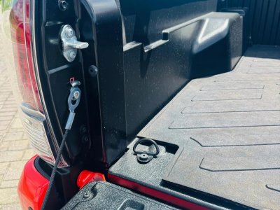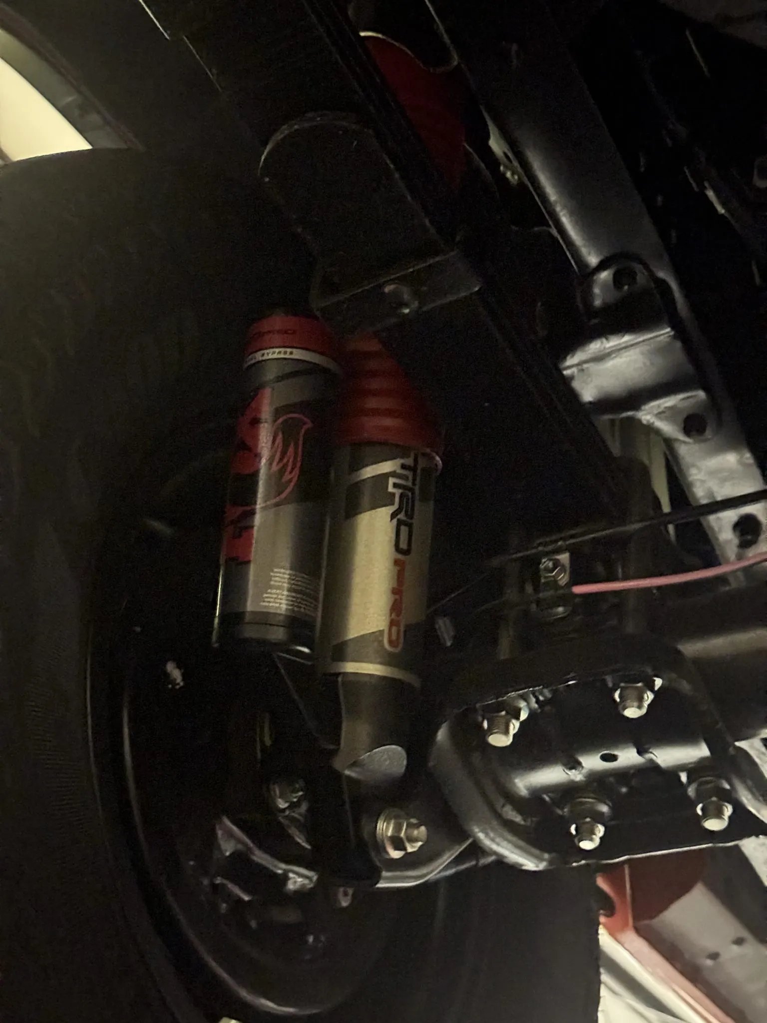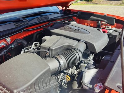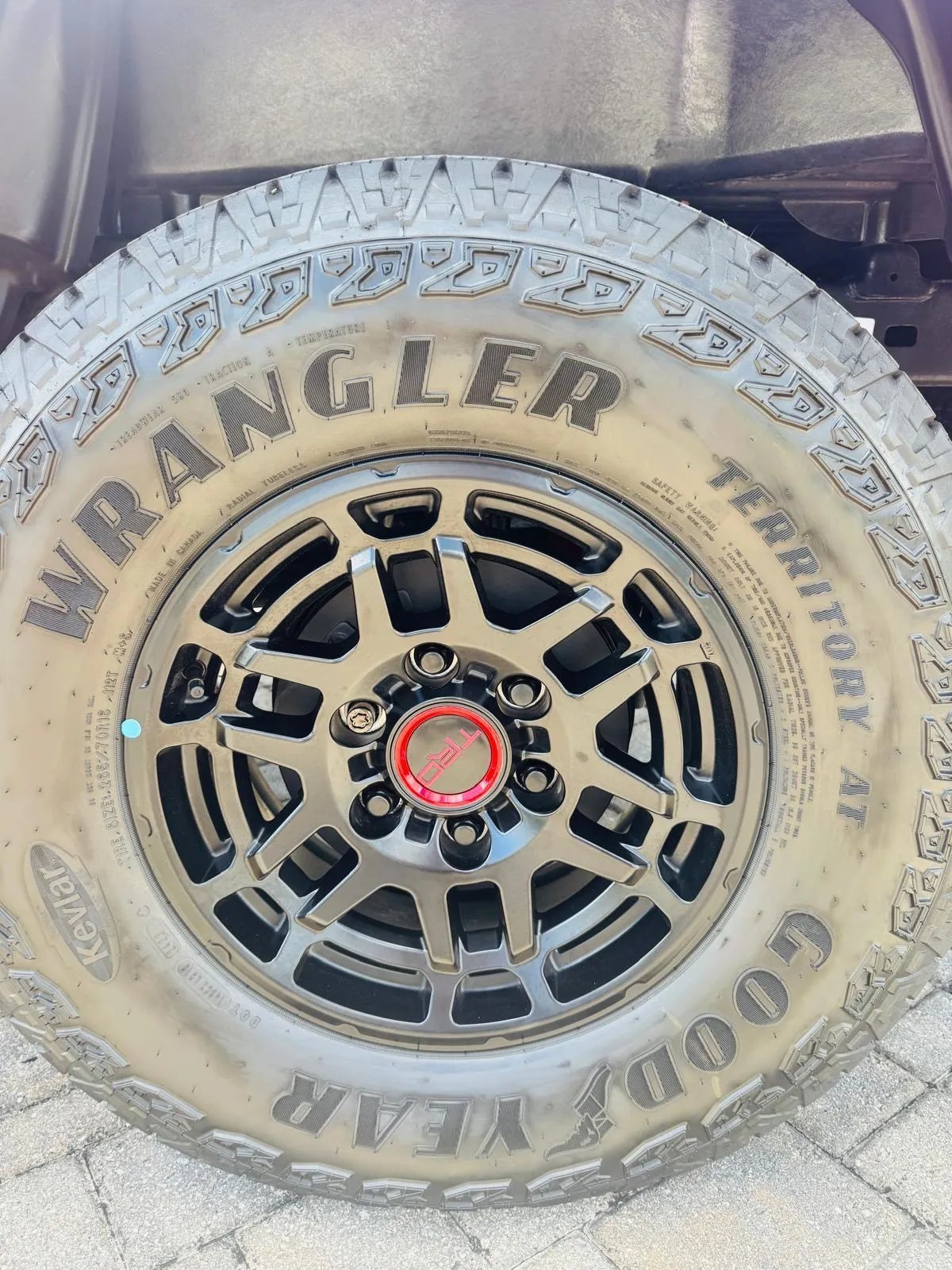 The 16″ TRD Pro black alloy wheels are mounted with Goodyear Wrangler tires. Braking is handled by power-assisted ventilated front discs and rear drums. The truck came equipped from the factory with an off-road-tuned suspension that utilizes 2.5″ Fox internal bypass shocks as well as Crawl Control and Multi-Terrain Select. The cabin is upholstered in black leather, and amenities include an 8″ touchscreen infotainment system, a power-adjustable driver’s seat, heated front seats, Pre-Collison Assist, Lane Departure Alert, air conditioning, Dynamic Radar cruise control, and power windows, mirrors, and locks.